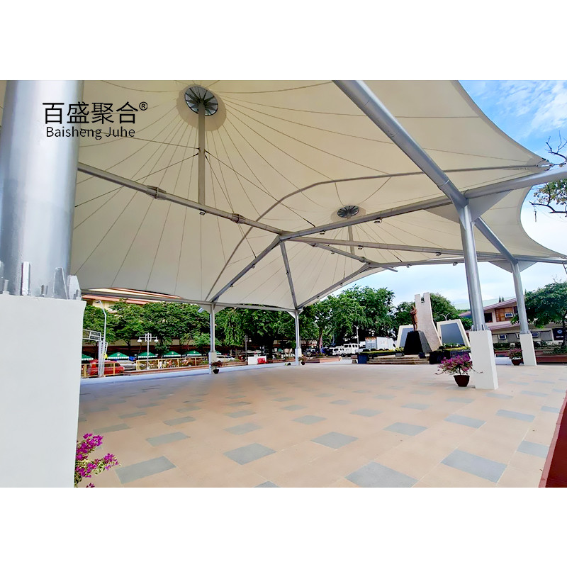 জলরোধী তাঁবু ফ্যাব্রিক ছাদ ইস্পাত টেনশন টেনসিল ফ্যাব্রিক ছাতা ক্যানোপি ইস্পাত বিল্ডিং ঝিল্লি গঠন